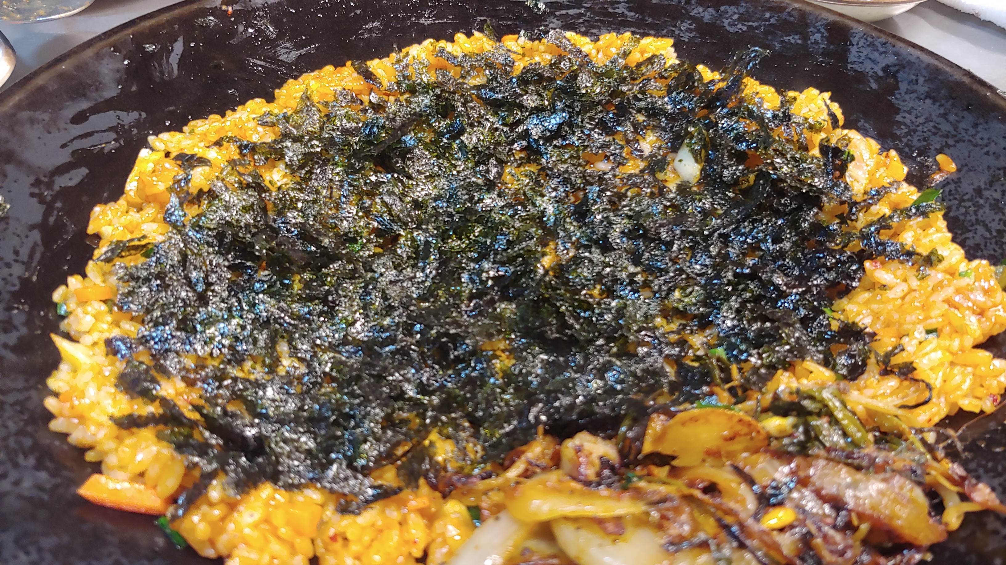볶음밥을 하나 시키니 밥을 볶아주고 그위에 김가루를 수북하게 뿌려준다.